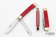 This set is 3 Model 112525 Trappers by Boker. Mirror polished blades, nickel silver bolsters, red covers, brass liners, stainless steel spring. Comes with boxes and papers. Excellent condition.