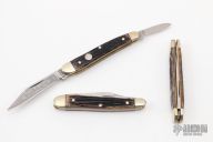 This set is 3 Model 240 GBC 2-Blade Slipjoints by Boker. Mirror polished blades, nickel silver bolsters, jigged bone covers, brass liners, stainless steel spring. Comes with boxes and papers. Excellent condition.