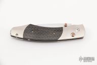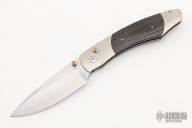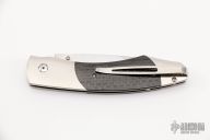 This B12 by William Henry Fine Knives features a hand rub satin finished blade with single Spessartite inlay, push button lock has matching stone inlay, both have 18K gold bezels. The handle has an orange peel finished titanium frame with carbon fiber inlays, tip up reversible polished titanium clip. Has light scuffs and scratches otherwise good functioning condition.