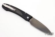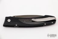 This E10 folder features a D2 steel blade coated with a molecular bond of Tungsten Carbide for superlative wear resistance.The frame is T6061 aluminum hard anodized for long life. Carbon fiber inlays. Stainless and Titanium fittings. #84 on blade. Has scuffs and scratches, otherwise good functioning condition.