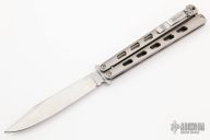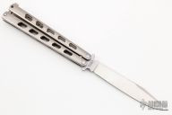 This Arc Angel by Cold Steel features a satin finished blade with false top edge. The handles are satin finished titanium with a tip up stainless steel clip, titanium T-latch at the butt.  Light scratches are visible on the blade otherwise the knife is in Excellent Condition.
