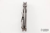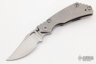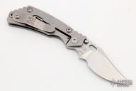 This PT Persian by Mick Strider features a stonewashed blade with notched thumbrest and thumbhole. The handle has a stonewash finished titanium frame with matching tip up clip. Excellent condition.
