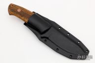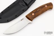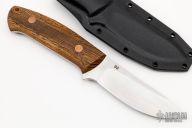 This Nessmuk by Dan Crotts features a satin finished blade, .125" blade stock and 1.128" blade depth, full tang construction. The handle has partridge wood scales with copper pins and lanyard hole. Comes with a kydex sheath. New from maker.