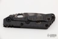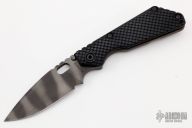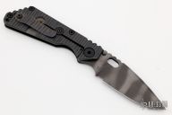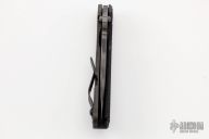 This SNG framelock folder by Mick Strider features a stonewashed blade and a dimple pattern black G-10 and flamed titanium frame and tip up titanium clip. Includes a "Lock Bar Stabilizer" for maximum reverse lock retention. Nice detent, lockup and blade seating. Has a couple light scuffs, otherwise excellent condition.