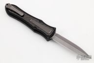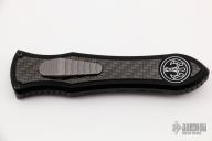 This knife is a Deadlock Model C by Grant and Gavin Hawk. It has a double edged stonewashed blade. The handle has a carbon fiber and black aluminum frame with a tip down spring clip, titanium. The thumb slide on the handle is also titanium and handle has titanium overlays. Comes with a cloth pouch. Grant and Gavin Hawk set out to create a double action OTF with no blade play.... They did it, NO blade play. Comes with tool, cloth pouch and card. Excellent Condition.