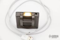 This custom Flashligh/Ipod by Saberwolf is made from stonewashed titanium with scalloped edges. Led color cool white. Moneyclip Bezel-up. Green Glow power button. Green Glow behind the LE. Ipod shuffle 4gig. 12 green tritium tubes. Comes with charging cord that also accesses the ipod. Excellent condition.