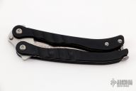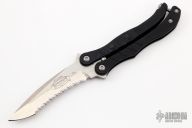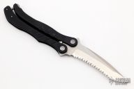 This Metalmark from Microtech features a satin finished recurve blade with sedge and full serrations. The handle has an aluminum frame with spring-loaded latch on pommel.  Includes the original box and papers.  S/N 01744.  Dated 06/2013.  Excellent Condition.