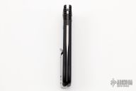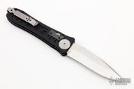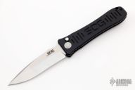This Spec Elite I Auto by SOG features a satin finished recurve blade with notched thumbrest. The handle has a black aluminum frame with notched thumbrest. Has safety and tip up SS clip. Excellent condition. Comes with original box.