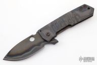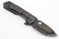 This FIFP (Fear is For Prey) framelock flipper features a phantom finished blade and flame anodize finished titanium frame. Matching titanium clip, tip up carry. Smooth action. Strong lockup. Very nice work. Includes original box and papers. Excellent condition.