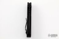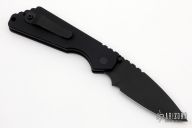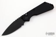 This Pro-Strider SNG by Pro-Tech and Strider Knives features a black blade with notched thumbrest. The handle has a black aluminum frame with black hardware and black stainless steel tip up clip.  There is a tritium lantern inlaid into the push button.  Comes with original box and papers. Light scuffs are visible on the frame Excellent Condition.