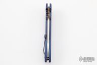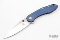 This Tolk Mid-tech by Brad Southard features a stonewashed finished blade with satin grinds, notched thumbrest and flipper. The handle has a bead blasted titanium frame with matching tip up clip, titanium barrel spacers, lockbar stabilizer and pivot. Bearing Pivot. Comes with original box and papers. Excellent condition.