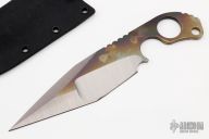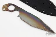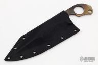 This XL SLCC by Mick Strider features a chisel ground Strike Plate Titanium blade with a notched thumbrest, .214" blade stock and 1.752" blade depth. The handle has a finger groove and ring. Comes with a kydex sheath. New condition.