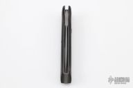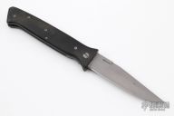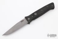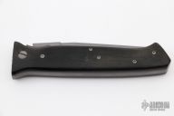 This Prototype Automatic from Butch Vallotton features a bead blasted clip point blade with false top edge. The handle is comprised of black linen micarta scales over bead blasted titanium liners, steel backspacer and hardware. Has a few light scuffs, otherwise excellent condition. Marked "Prototype" on blade. Includes a zippered case.