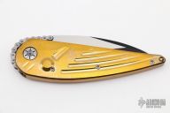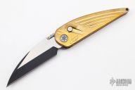 This MRX by Rat Worx features a two-tone razor style blade. The handle is satin brass with a chain drive opening mechanism. Comes with original box, zippered case and papers. Has some light scratches on the frame, otherwise excellent condition.