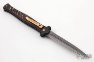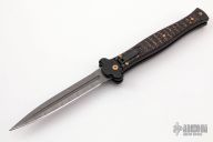 This Zero model features a dragon skin carbon fiber handle and a Damascus dagger blade. The AGA Campolin Zero automatic offers Italian-made craftsmanship at it's very finest. This model is characterized by a flawless fit and finish, rock solid blade lock up, and snappy automatic deployment. The Zero is definitely not your grandpa's Italian stiletto, with dragon skin carbon fiber scales, black stainless steel bolsters, and a Damascus blade with a false top edge. A stainless steel tip-down pocket clip finishes off the solid EDC design. Comes with original box and papers. Excellent condition.