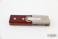 This California Auto by Rocky Enterprises features a satin finished drop point blade. The handle is comprised of tan bolsters and wood scales over steel liners and black backspacer. Includes original box. Excellent condition.