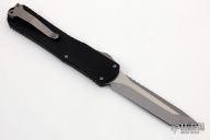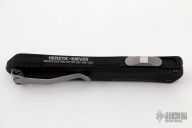 This Manticore-X Prototype by Heretic Knives comes equipped with a battleworn finished tanto blade and a black anodized aluminum handle. The Heretic Knives Manticore-X is a full size Out-the-Front knife with a clean and functional aesthetic. It features a contoured aluminum chassis with jimping all along the sides. This lightweight and capable OTF knife opens and closes smoothly, making for an excellent every day or tactical carry. Comes with a ball-bearing glass breaker and a deep carry pocket clip.  Comes with original box and papers. #040.  Excellent Condition.