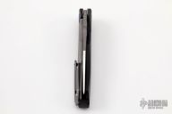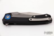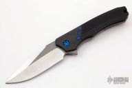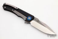 This V.2 Wraith Prototype by Heretic Knives features a hand ground belt satin finished clip point blade with false top edge and notched thumbrest and flipper. The handle has a carbon fiber bolster, integral black aluminum handle with a tip up stainless steel clip with ceramic ball, lanyard hole at the butt, blue titanium hardware. Comes with original box, COA dated 11/19 and draw string bag. S/N 013. Excellent condition.