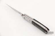 "I have been making knives since 1973 and have been a voting member of the Knifemakers Guild since 1976. Membership in the Knifemakers Guild was one of the highlights of my life, and I am constantly trying to upgrade the quality of custom made knives. I've been a dentist in private practice since 1962, and working with my hands and concentrating on detail has been my way of life. Utilizing many of the same skills, knifemaking offers me the ultimate in creative expression. All of my knives are completely handcrafted. Folders have become my specialty, however I enjoy making all types of knives, including special designs that suit the particular needs of the customer. Natural handle materials are my preference... the more exotic the better! The steels I use are 440C stainless and Udeholm UHB stainless. Heat treating is done by me in my own controlled-atmosphere oven. I have been forging blades since 1982. I make both 01-mild Damascus and 10/70 spring steel nickel Damascus. I guarantee my forged blades will not break."