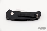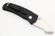 This auto by Pro-Tech was hand ground by WR Clark and is marked #02 on the blade. Satin finished hawkbill blade with black aluminum handle and tip up stainless steel clip. Has a few light scuffs, otherwise excellent condition. Comes with a nylon belt sheath.