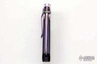This D/A Auto by Thomas Vallotton features a satin finished blade with dual tritium thumbstuds and a notched thumbrest. The handle features stainless steel bolsters micarta scales over anodized titanium liners and a tip down pocket clip, stainless steel backspacer. Comes with a zippered case. Nice action, lockup and blade seating. Has some light scuffs/scratches, otherwise good condition.