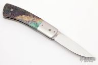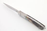 "I have been making knives since 1973 and have been a voting member of the Knifemakers Guild since 1976. Membership in the Knifemakers Guild was one of the highlights of my life, and I am constantly trying to upgrade the quality of custom made knives. I've been a dentist in private practice since 1962, and working with my hands and concentrating on detail has been my way of life. Utilizing many of the same skills, knifemaking offers me the ultimate in creative expression. All of my knives are completely handcrafted. Folders have become my specialty, however I enjoy making all types of knives, including special designs that suit the particular needs of the customer. Natural handle materials are my preference... the more exotic the better! The steels I use are 440C stainless and Udeholm UHB stainless. Heat treating is done by me in my own controlled-atmosphere oven. I have been forging blades since 1982. I make both 01-mild Damascus and 10/70 spring steel nickel Damascus. I guarantee my forged blades will not break."