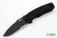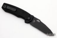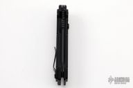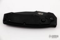 This knife designed by Grant and Gavin Hawk features the ZT feel with lighter weight. Features the ZT’s CrossFire Auto Lock for extreme lockdown security. The blade is a black matte, non reflective DLC coating, drop point with partial serration made from 154CM Stainless. The scales are anodized 6061-T6 with G-10 inlays. Adjustable pivot shaft and a removable/reversible clip. Comes with a nylon belt sheath. Excellent condition. #1038