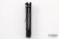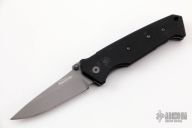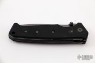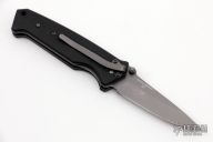 This Timberline Signature series knife is a Butch Vallotton design, it has been given a scale release auto conversion by Butch and Brandon Vallotton. It features a dark grey blade with notched thumbrest and dual thumbstuds. The handle has black G-10 scales, stainless steel liners, black FRN backspacer, lanyard hole at the butt, and a tip down dark grey stainless steel clip. Comes with original box. Excellent condition.