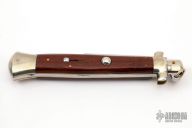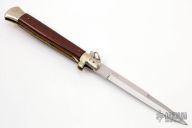 This is Ring Pull Auto by AGA Campolin with a mirror polished spear point blade with false top edge. Number 18 of just 30. Nickel silver bolsters and butt with cocobolo scales. Functions well with good lockup. Excellent condition.