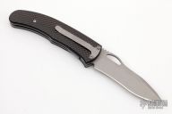 "The new Lobo automatic is a double-action automatic knife that can function as a one handed opening locking-liner knife or be instantly fired in the automatic mode. The Lobo has a 3.5 inch blade to handle any cutting chore and a convenient stainless steel pocket clip. The automatic firing mechanism is hidden under the handle and is activated by sliding the left side handle scale towards the top of the knife. Because there are no apparent buttons on the outside of the handle the fact that the Lobo is an automatic is known only to its owner. This makes the Lobo convenient to carry and use anywhere." This Lobo features a bead blasted blade and black carbon fiber handle. Includes original box and paperwork. Excellent condition.