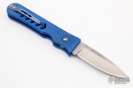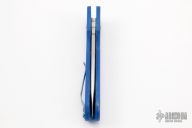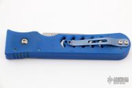 This side-opening automatic by Rob Dalton features a satin finished blade and blue G10 handle. Anodized titanium clip. Strong and fast coil-spring opening. Marked "1991 - 2006" on front of blade and "15th Anniversary" on back of blade. Excellent condition.