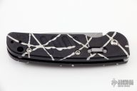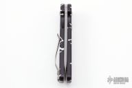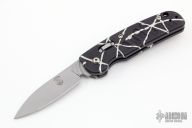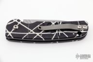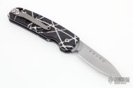 This 07/1 Prototype side opening automatic by Rob Dalton features a bead blasted blade. The handle has a black/silver aluminum frame with a tip up bead blasted titanium clip, can be right or left. Has "USA" on frame and "07". Excellent condition.