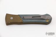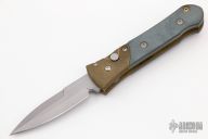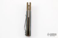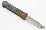 This Prototype HD Street Fighter side opening automatic by Rob Dalton features a bead blast steel blade with a false top edge. The frame is Brass with black G-10 inlays. Bead blast titanium clip. Good strong action. Comes with original box. Excellent condition.