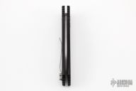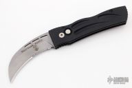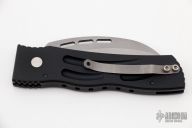 This War/Hawk Prototype by Rob Dalton features a bead blasted partially serrated blade and black aluminum handle. Strong coil spring. Tip up titanium clip. Excellent condition.
