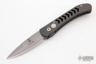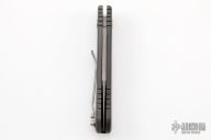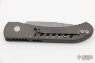 This side-opening automatic by Rob Dalton features a bead blast blade and an aluminum frame. Bead blast titanium clip. Push button coil spring opening with strong action. Excellent Condition.