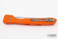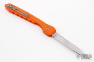 This WASP from Rob Dalton features a bead blasted clip point blade, orange G-10 handle and a bead blast titanium clip, tip up carry. Strong coil spring opening. Excellent condition. Proto 06 on blade.