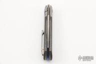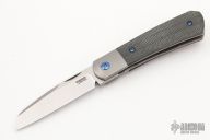 This Apache Front Flipper was designed by Enrique Pena, manufactured by Reate Knives and features Lee Williams Kickstop.  This knife features a satin finished blade with notched thumbrest and flipper tab.  The handle has bead blasted titanium bolsters, black canvas micarta scales with an anodized titanium backspacer and a bead blasted titanium tip up pocket clip. Includes original box. Excellent condition.