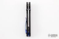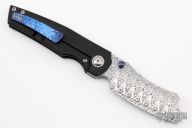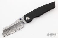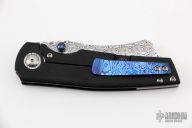 This Production Barber by Berg Blades features a Damasteel blade with notched thumbrest and dual timascus thumbstuds. The handle has a darkened stonewashed titanium frame with Timascus backspacer and tip up clip. Comes with pouch and COA. Nice detent, lockup and blade seating. Excellent condition.