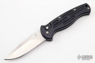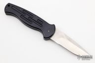This AFO Side Opening Auto has a satin finished spear point blade. Handle is black aluminum with milled fullers and lanyard hole. Has a couple of marks on the handle, otherwise excellent condition.