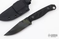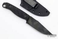 This Crow Jr by Half Face Blades features a cerakoted drop point blade with a full tang construction. .161" Blade Stock. 1.27" Blade Depth. The handle is composed of contoured G-10 scales. Comes with a kydex sheath. Excellent Condition.