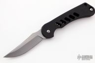 This Smokey III scale release automatic by Rob Dalton features a bead blast finished .167" thick blade and black aluminum handle. Bead blast stainless steel clip. The blade is deployed by sliding the rear end of the handle scale down. Strong and fast coil-spring opening. Has a couple light scuffs, otherwise excellent condition.