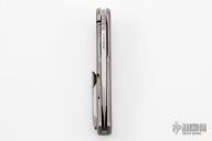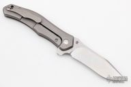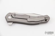 The Sprocket was designed by Jerry McGinnis. It has a stonewashed blade with notched thumbrest and flipper. Bead blasted titanium handle with matching backspacer and tip up clip. Rides on caged ceramic bearings to ensure smooth action. Excellent condition.