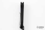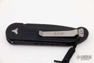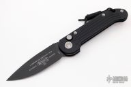 This LUDT side opening automatic by Microtech has a black finished blade with a standard edge and a contoured black aluminum frame. Stainless steel clip. Dated 09/2018 and serial number 09323. Excellent condition.