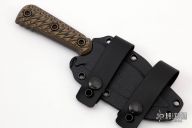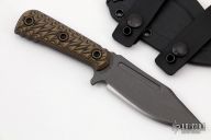 The UCAP is a mid-sized fixed blade that is geared for everyday carry. The knife was created with a defensive purpose in mind, but is also well equipped for any and all cutting chores where a knife is called for, from first responder situations, outdoors activities, and just about anything else you can throw at it. It's a looker too, look at those classic lines and that belly! The UCAP has a bowie-style clip point blade made from S45VN steel. The knife features a 4" blade that has a tungsten cerakote finish for corrosion resistance and durability. Weighing in at 5.2 oz, the knife is deceptively light, yet can hold its own in both categories of everyday carry as well as heavy use tactical knife. Offering a full tang and tubed rivet handle construction, this is one tough little knife! The beveled and contoured G10 grips feature a diagonal texturing that offers a very secure grip without being overly aggressive and they work very well wet or dry. New from maker. Comes with original box, papers and sheath.