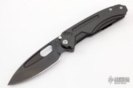 The Infraction by Medford Knife and Tool features a PVD coated drop point blade with a recess and oversized thumb hole. The handle is composed of PVD coated titanium and carbon fiber. The tip up carry pocket clip is composed of titanium. Smooth action and strong detent. Excellent Condition.
