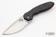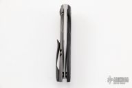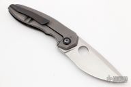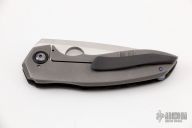 This Framelock by Tuff Knives features a hand rub satin finished blade with thumbhole. The handle has a marble carbon fiber and bead blasted titanium frame with a  mokuti spacer, tip up blackened titanium clip, zirconium pivot collar, anodized titanium hardware. Centered blade seating, smooth action, nice detent and lockup. Has some light scuffs/scratches, otherwise excellent condition.