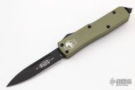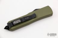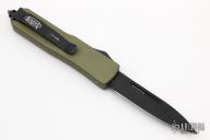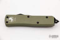 This UTX-85 OTF automatic features a S/E black blade with a standard edge, and green aluminum handle. Tip down black stainless clip. Serial number 01092 and dated 04/2010. Comes with sheath. Has a little wear on the black finishes, otherwise excellent condition.