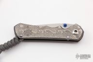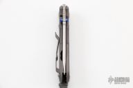This Small Inkosi from Chris Reeve Knives features a tumble finished drop point blade with dual anodized thumb studs and notched thumbrest. The handle is comprised of a bead blasted and laser engraved titanium frame over a single barrel spacer with a matching bead blasted titanium tip up clip. Includes original box, paperwork and accessories. New condition. Maker's card dated August 25, 2020.