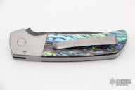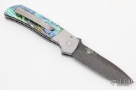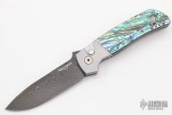 This ATCF Auto by Pro-Tech features a Chad Nichols Damascus blade with notched thumbrest. The handle has a 416 SS frame with abalone scales, tip up milled titanium clip with hidden screws. Comes with original box and papers. New from maker.