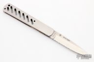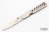This liner lock from Al Mar Knives has a partially serrated drop point satin finish blade with single thumb stud. The handle is comprised of a stainless steel liner and frame. Comes with original box and papers. #13/200. Excellent condition.